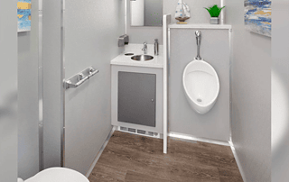 Our 2-stall restroom trailer features two standard restrooms, each with a private entry stall. Within each stall, you’ll find a sink and mirror, providing convenience and comfort for your guests’ needs.