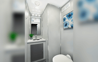 Designed to accommodate up to 350 guests, our 4-stall restroom trailer offers a spacious and inviting atmosphere. With individual floor designs, each stall provides a unique and delightful experience for your guests, ensuring comfort and satisfaction throughout their event.